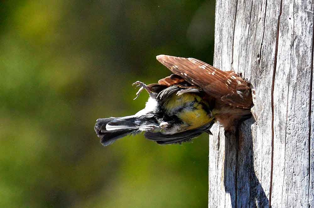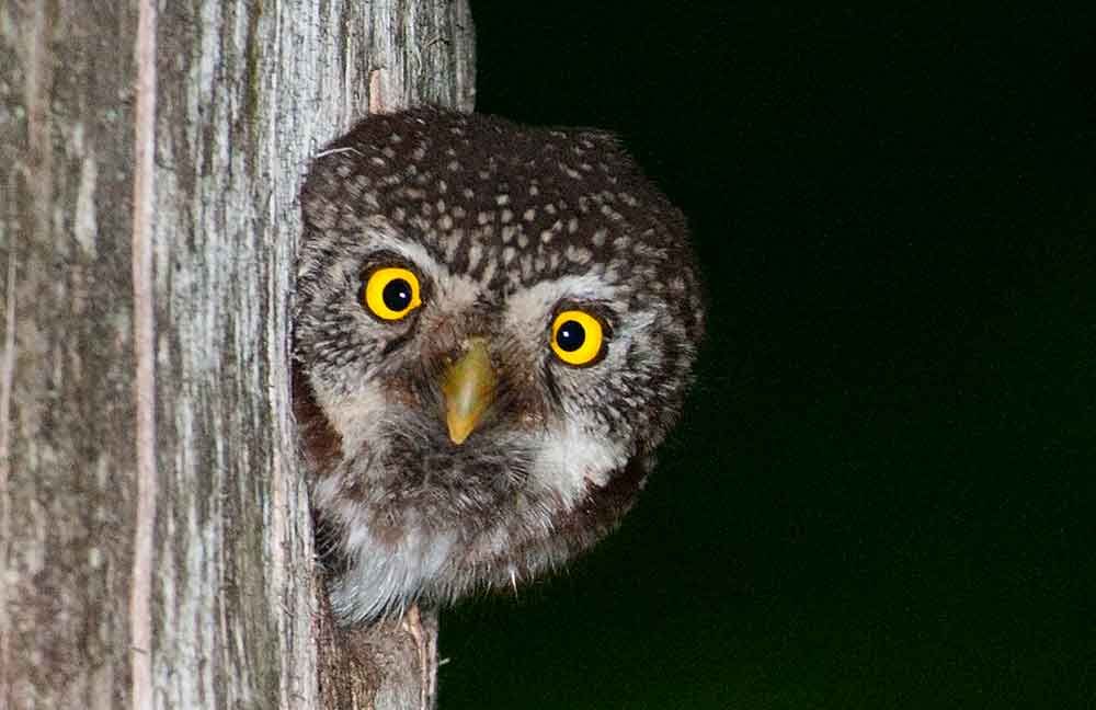 – Nej, sparvugglor är orädda och man kan komma ganska nära dem. Men man ska inte härma dem för då kan hannen anfalla. Det har jag varit med om en gång!