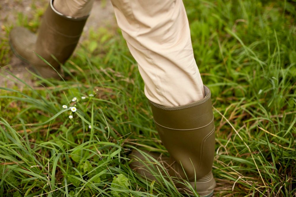 Ljusa långbyxor med benen nerstoppade i strumporna gör det svårt för fästingarna att hitta in och lätt för dig att fånga dem om de försöker. Looken kompletteras gärna med rejäla stövlar.