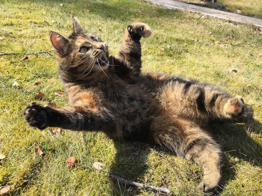 Aktion med klös. Linnea Lundquist fångade bondkatten Tingiling mitt i en underbart vass lek. Tingiling bor tillsammans med Linnea och hennes mamma i Flen.