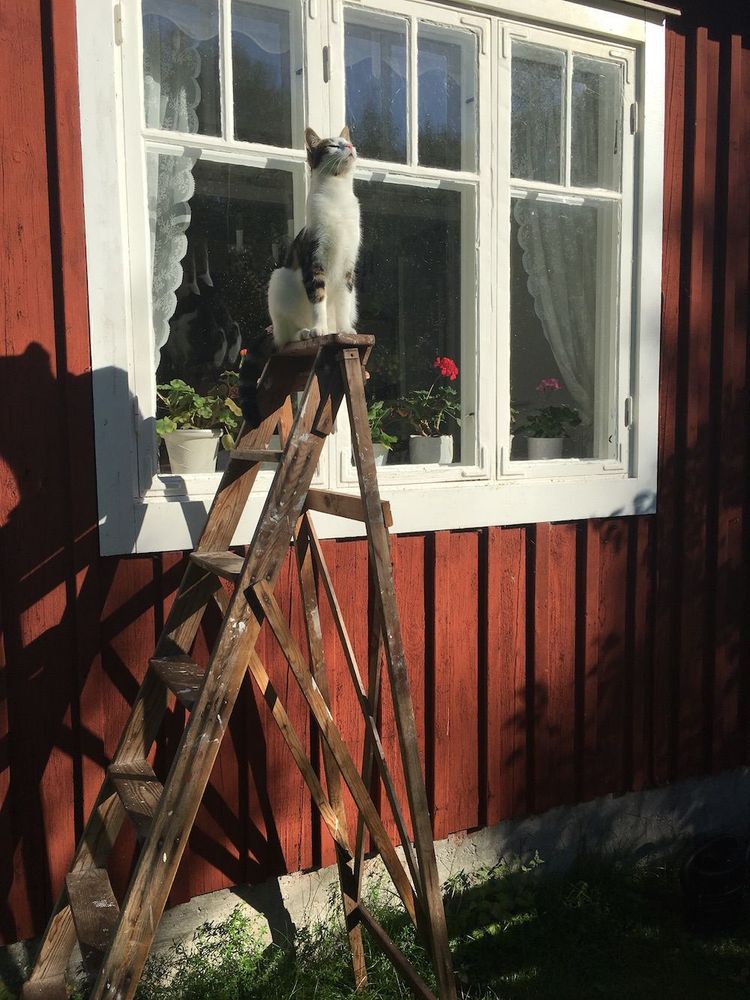 – Då fick inte Astrid något men nu är det hennes tur. Jag ställer det högt så att hon och de andra katterna får äta i fred.