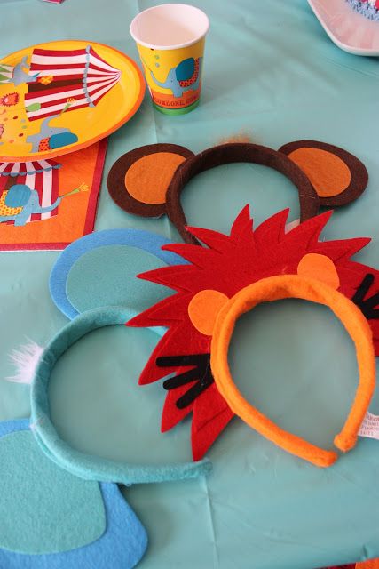 Pynta diadem med filt och syntetpälsbitar och vips så förvandlas gästerna till cirkusdjur! Källa