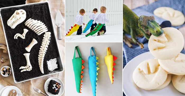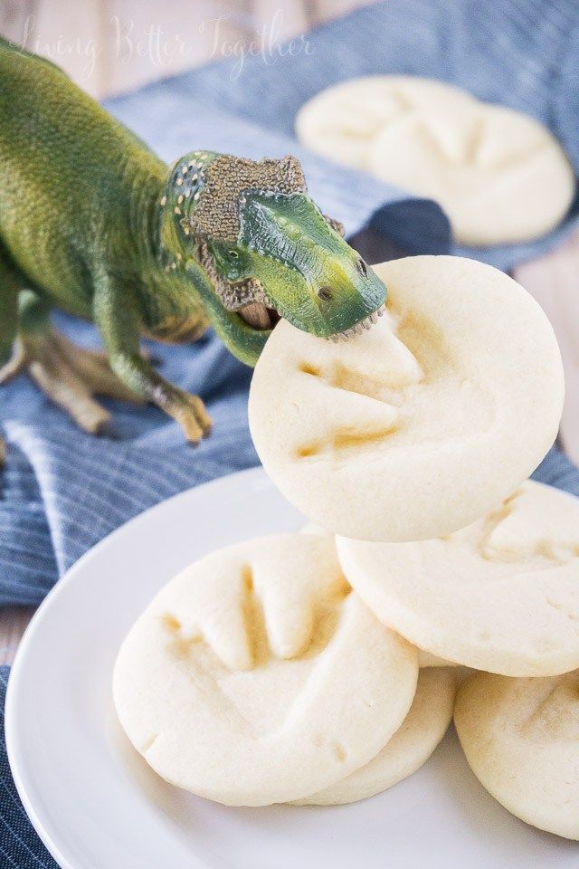 Gör kakor och tryck en leksaksdinosauries fot på dem för att göra fotspår. Baka enligt receptet! Källa
