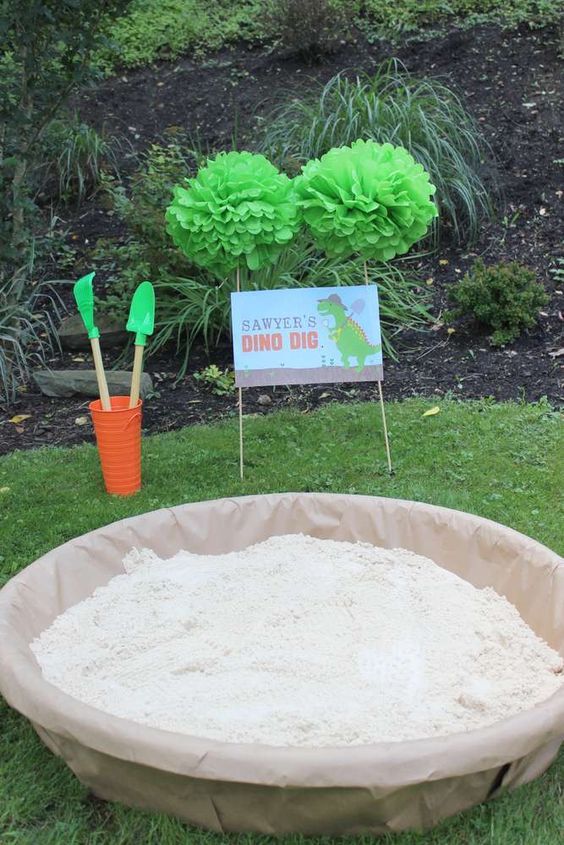 Göm några dinosaurier i en sandlåda eller pool med sand och låt gästerna gräva! Källa