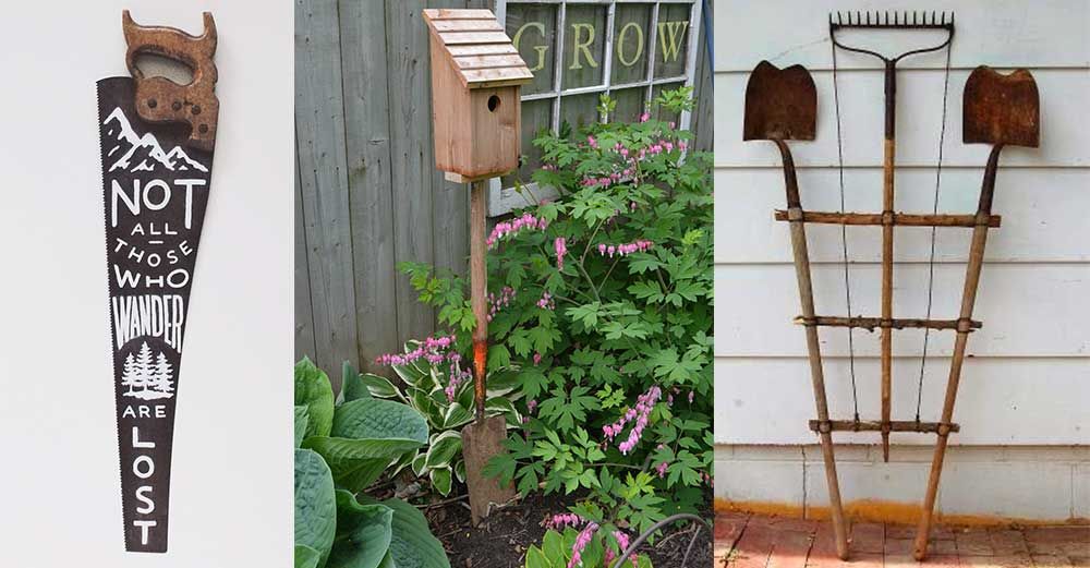 En spade till fågelholken och tvingar till krokar. Kolla in dessa kreativa återbruk av gamla trädgårdsverktyg.