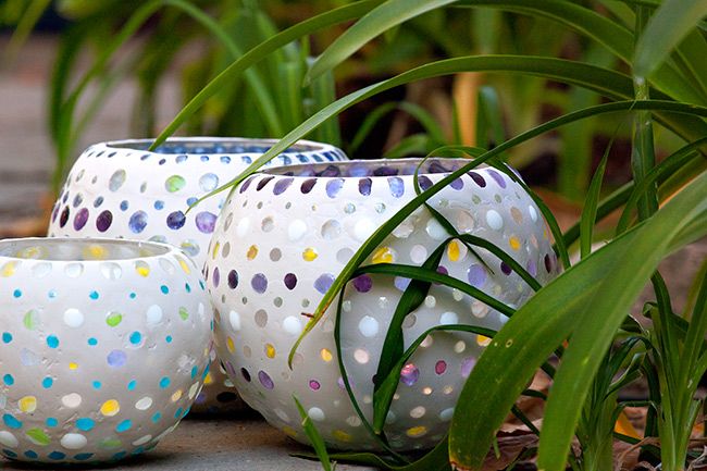 En gammal guldfiskskål blir till en färgglad lykta i trädgården. Se hur Artisticjunkie har gjort.