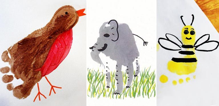 Fram med fingerfärgen och låt inspirationen flöda! Här är 13 roliga figurer som du kan förvandla hand- och fotavtrycken till!