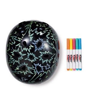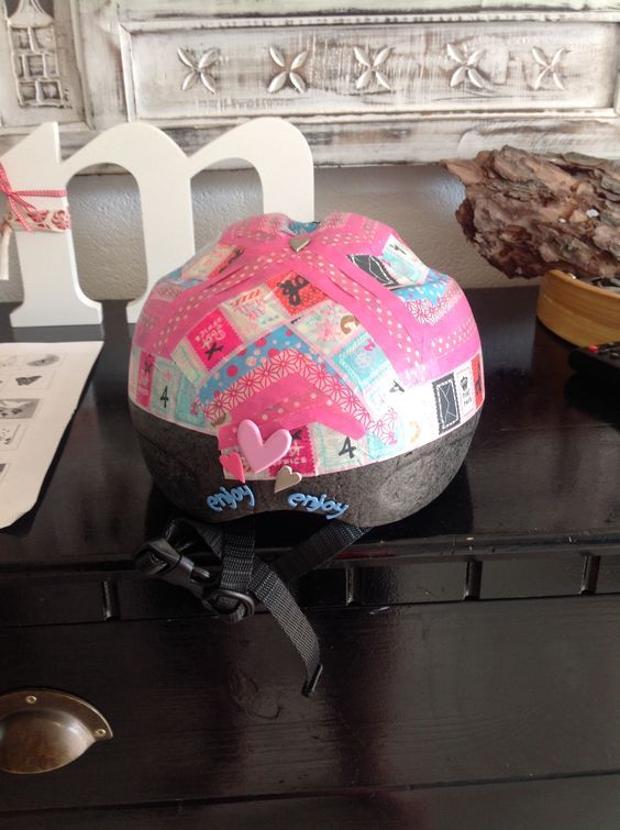Tidigare var det här en vanlig, tråkig röd hjälm - nu ser den ut som ett färgglatt kalas! It happens in a blink visar hur man gör med hjälp av lite washitejp och dekorationer.
