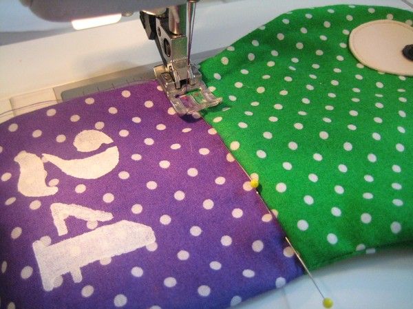 4. När färgen torkat ska du fixera siffrorna med strykjärn innan du syr ihop tygbitarna med raksöm. Sedan overlockar eller sicksackar du ihop sömsmånerna. Det blir en hel del belastning på sömmarna då ormen ska fyllas och tömmas på leksaker, så det är bra att vara noggrann.