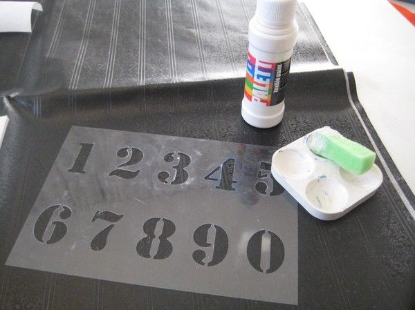2. Siffrorna kan du göra av schablon och textilfärg.