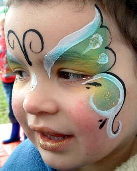En fjäril är inte svår att göra, gör vingarna runt ögonen och ner på kinden. Bilden kommer från blogmamma.it.