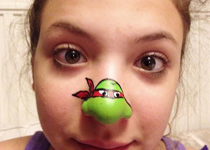 Tänk på att måla med färger som är gjorda för att användas på huden. Färger till ansiktsmålning finns oftast i välsorterade leksaksaffärer eller i hobbybutiker!
