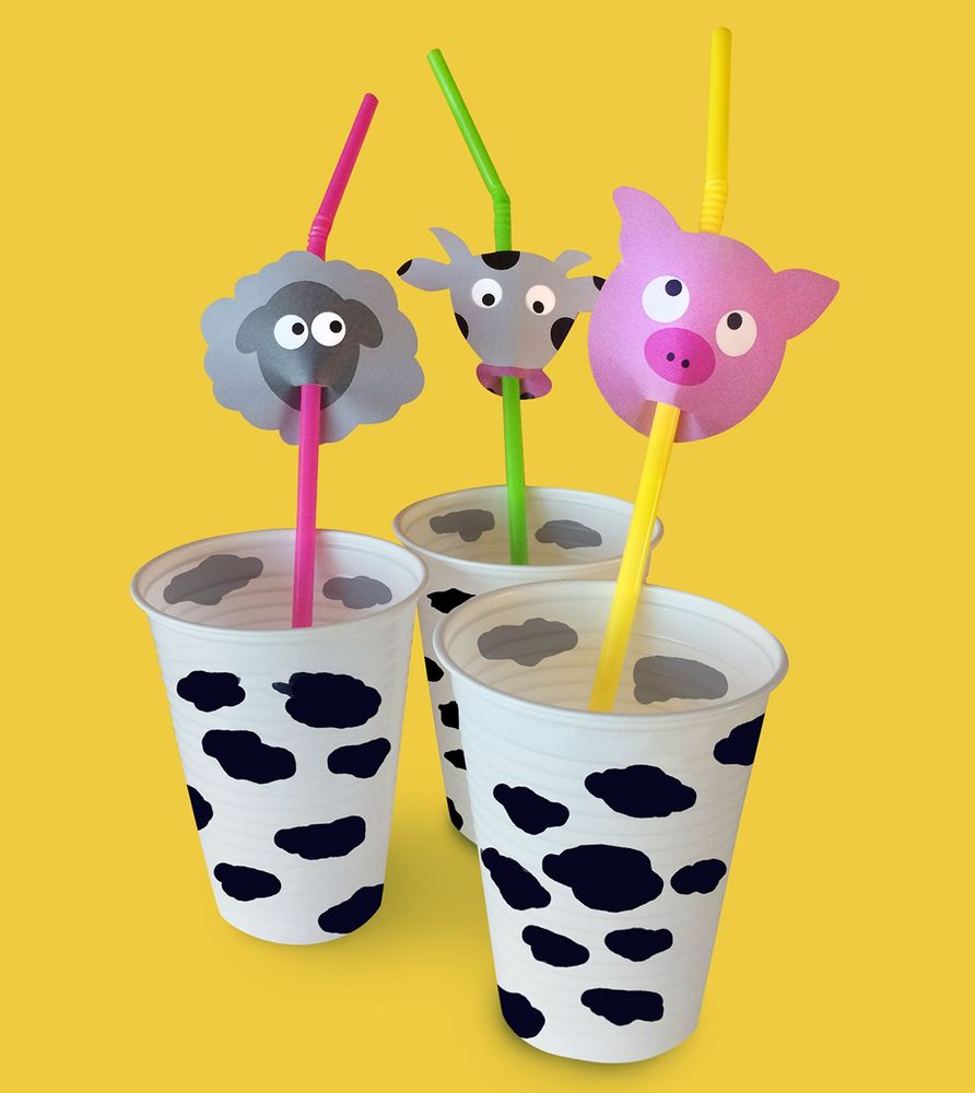 Tips! När du klipper hålet för sugröret, gör det genom att vika figuren lätt och klipp ett rakt streck. Annars ramlar figuren ner.