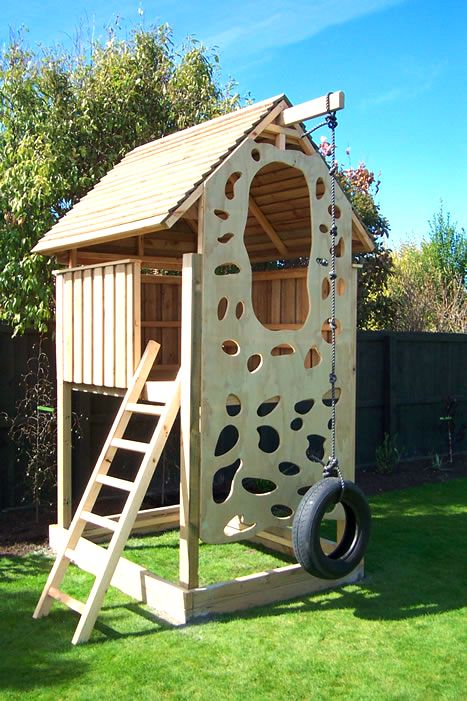6. Gungställning, klättervägg och koja allt på en liten yta