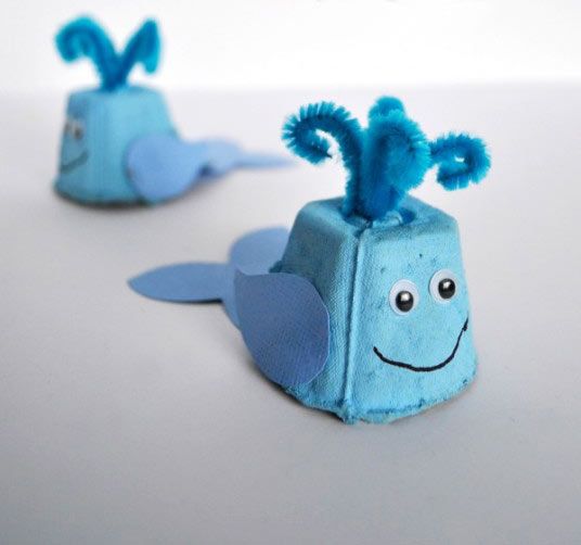 Med äggkartong och piprensare fixar du små miniatyrvalar! Bilden kommer från iheartcraftythings.com, där finns också beskrivning.