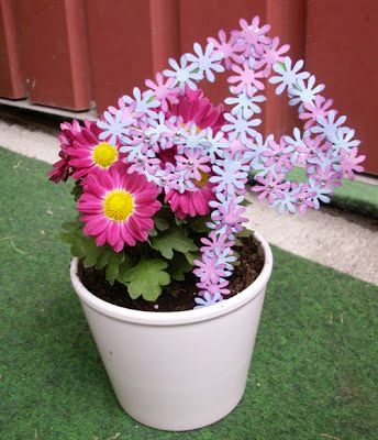 Midsommarstången av stansat papper, passar fint i blomkrukan. Källa
