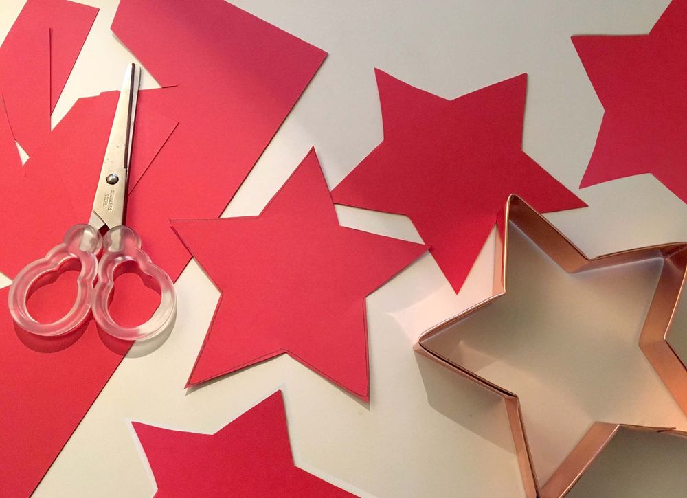 Papper, sax och lim är det som behövs för att göra stjärnorna som blir fina som bordsdekoration.