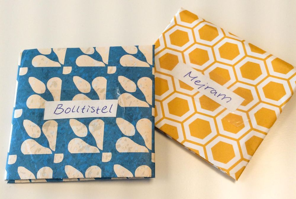 Den här fröpåse är enkel att vika och försluts helst med en tejpbit, ett snöre eller ett fint klistermärke.