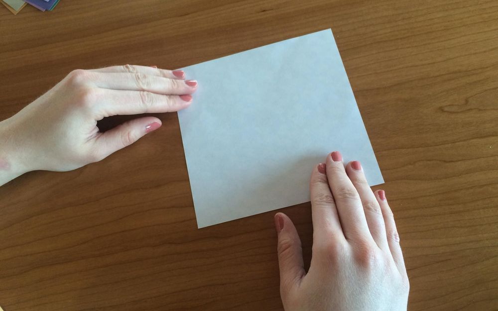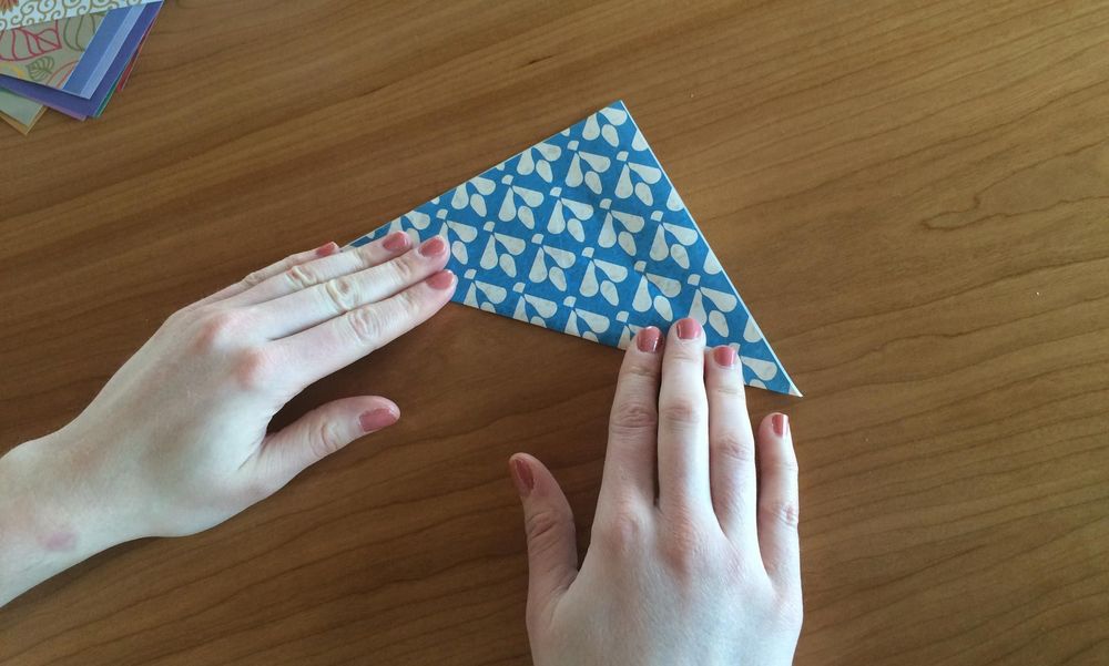 2. Vik papperet på diagonalen, så att det bildar en trekant.