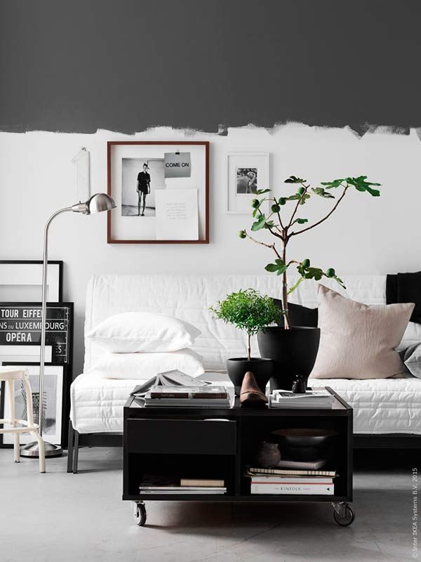 Skapa nya spännande linjer i rummet genom att måla en tjock rand som går genom tak, golv och väggar. Bilden kommer från apartmentteraphy.com.