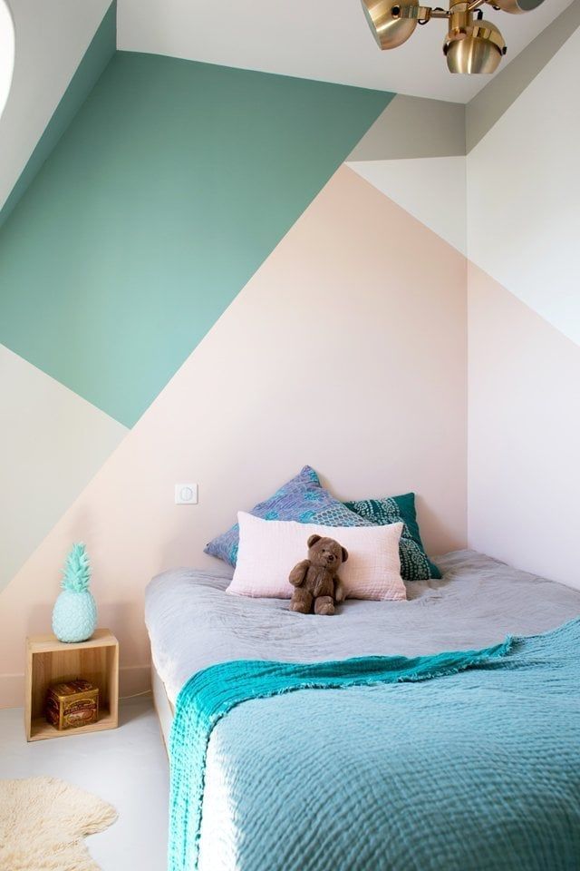 Tejpa upp raka linjer och skapa geometriska färgblock i färger som passar bra ihop. Bilden kommer från insidecloset.com.