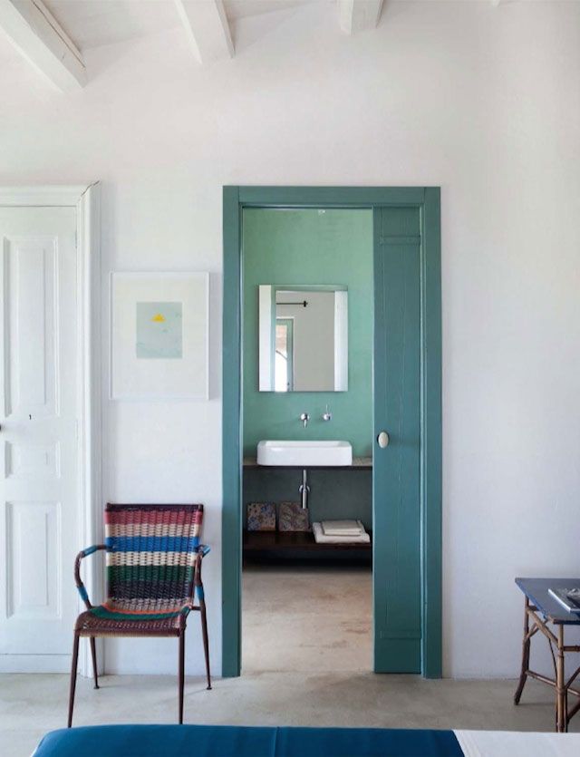 Istället för att måla väggen kan du måla en dörr och dörrkarmen! Bilden kommer från frenchbydesignblog.com.
