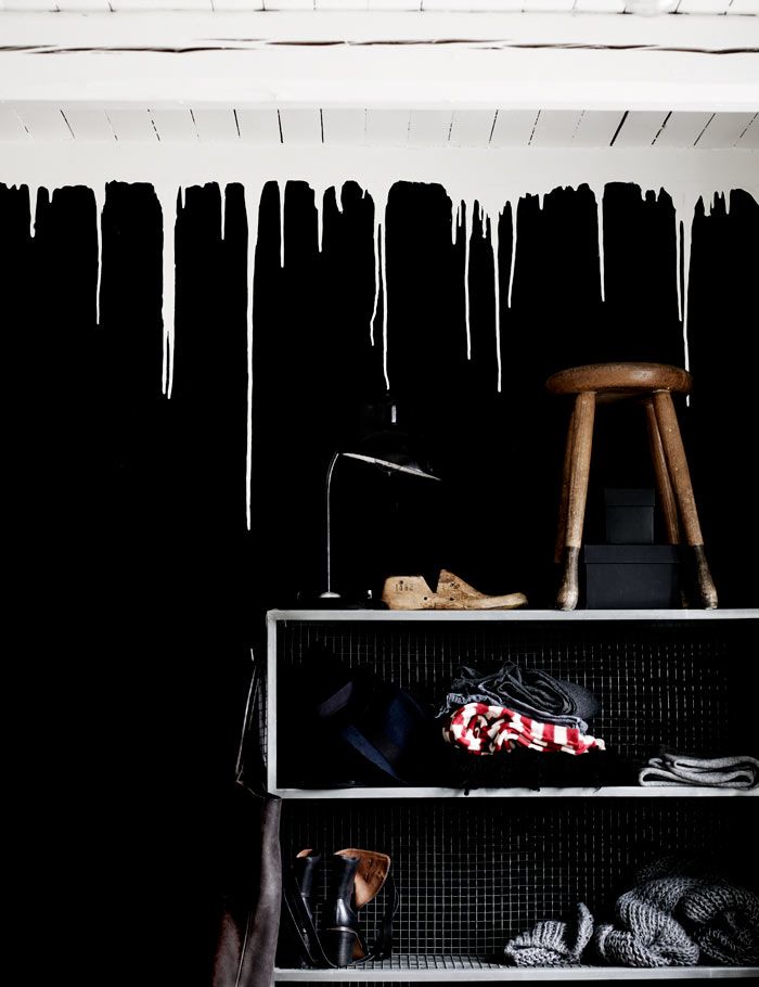 Istället för att ha en tydlig gräns mellan tak och vägg har man låtit takfärgen rinna ner på väggen för en spännande effekt. Bilden kommer från boken Hans Blomquist In Detail, och på elledecoration.se kan du se fler bilder ur den.