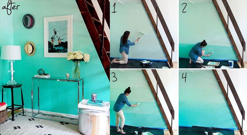 Låt väggfärgen tona ut på väggen. Bilden kommer från psimadethis.com där det också finns instruktioner.