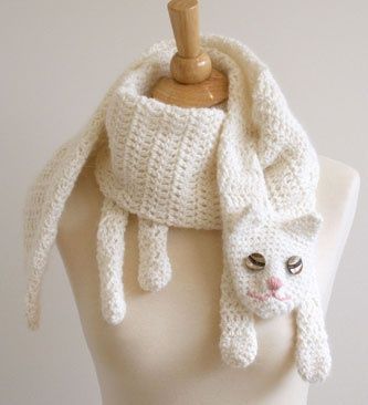 Mönstret till den här sjalen heter ”Cat Cuddler Scarf”. Översatt blir det kattgosar-scarf. Undra om inte någon kramat just den här katten lite för hårt.
