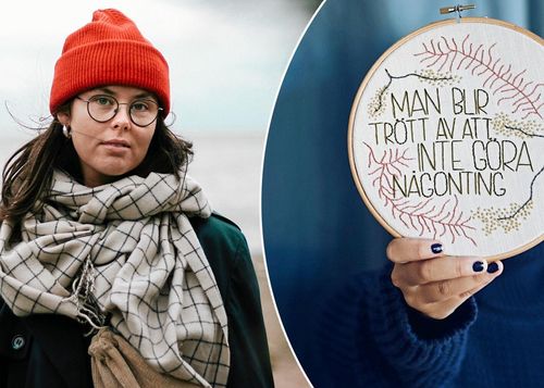 Med färgglada broderier tar Maja Delborn udden av de tröttsamma fraser som hon och andra med utmattningssyndrom ofta möts av.