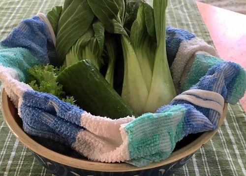 Gurka, sallad och annat bladgrönt behöver ingen plastpåse. Sy den smarta påsen som håller dem fräscha längre i kylen.