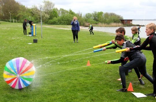 Tävla i vattenkraft, med badbollar och vattenpistoler!