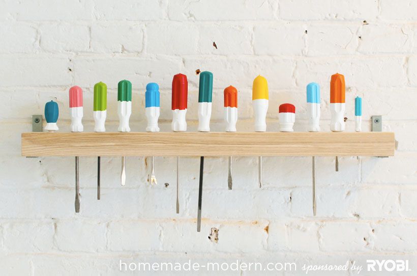 Allt du behöver är en bräda med hål i! Om du dessutom målar handtagen i kontrasterande färger blir hållaren extra dekorativ! Källa