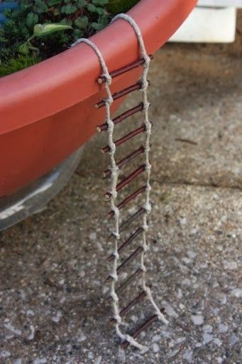Bind ihop små pinnar med snöre eller ståltråd och du har en repstege att hänga på krukan! Bilden kommer från indulgy.com.
