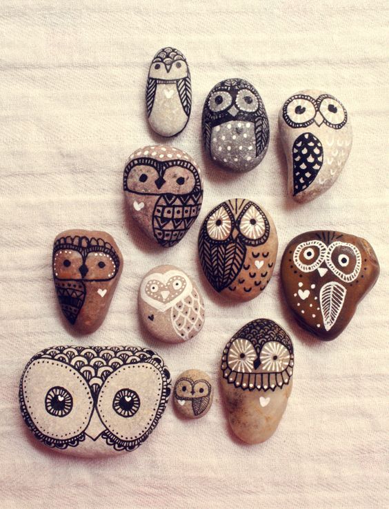 En större sten modell platt och ett gäng små stenar plus lite färg och lim är allt som behövs till denna gulliga stendekoration. Källa