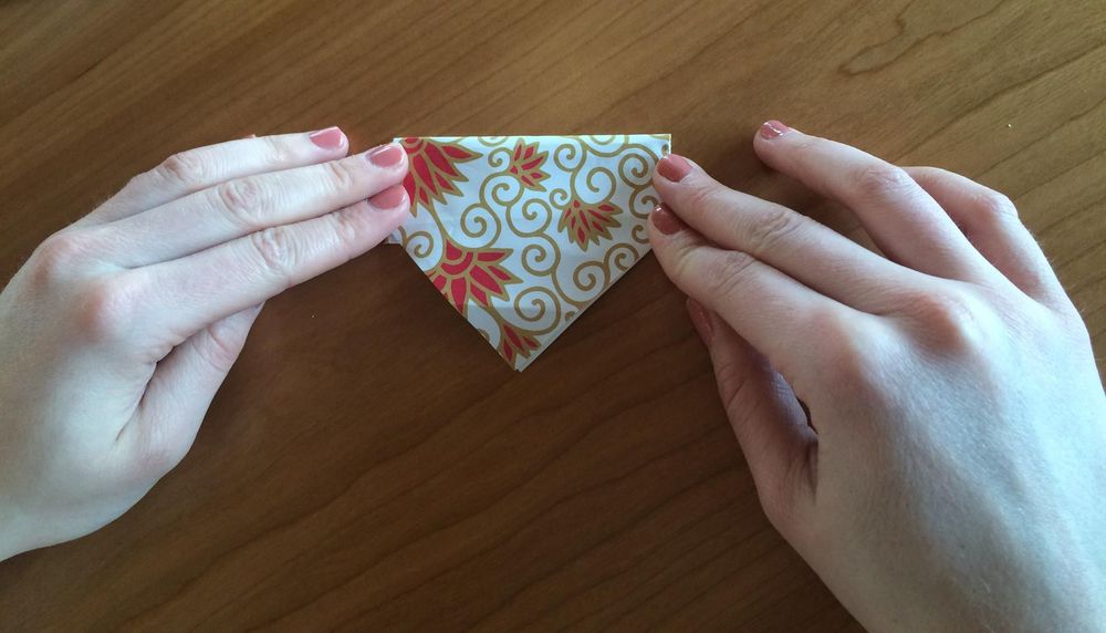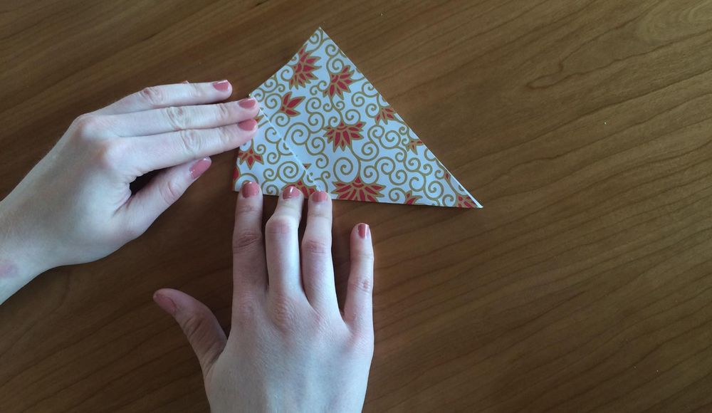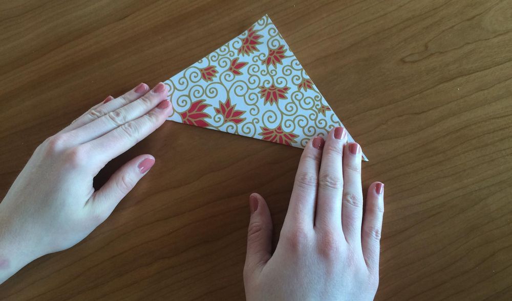 2. Vik papperet på diagonalen, så att det bildas en trekant.
