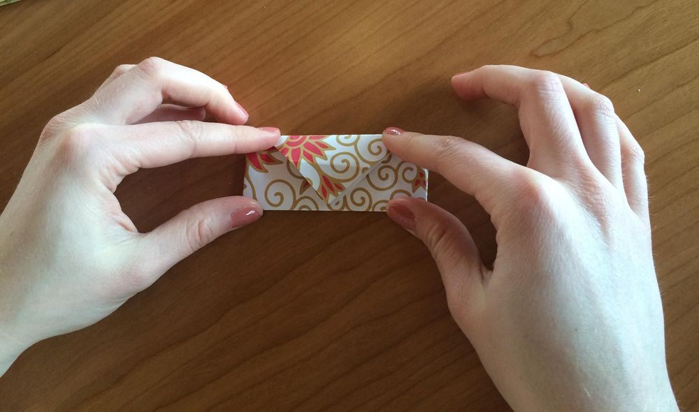 6. Vik ner de två översta flikarna, så att det bildas ett lock. Vik sedan upp locket igen.