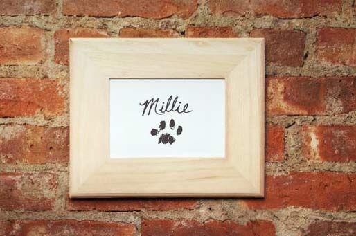 Med djurvänlig färg kan du enkelt göra en tavla med din älsklings tassavtryck. Varför inte sätta den över matskålen? Bilden kommer från Pinterest.