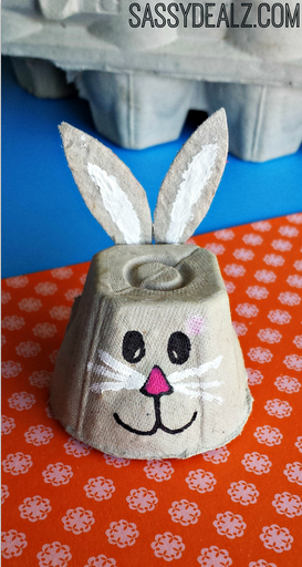 Klipp ut en botten och vänd den upp och ner. Måla kaninen och fäst fast två öron. Källa