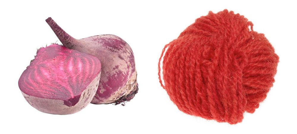 Färgämnet i rödbetan är svårflörtat. Ugnsbaka ett halvt kilo rödbetor mjuka. Skär i bitar och lägg i en rostfri gryta med vatten och en matsked alun. Lägg i ett kilo garn, värm utan att koka. Låt stå i fyra dagar. Se upp med temperaturen. Om badet kokas kan garnet bli brunt i stället för rött.