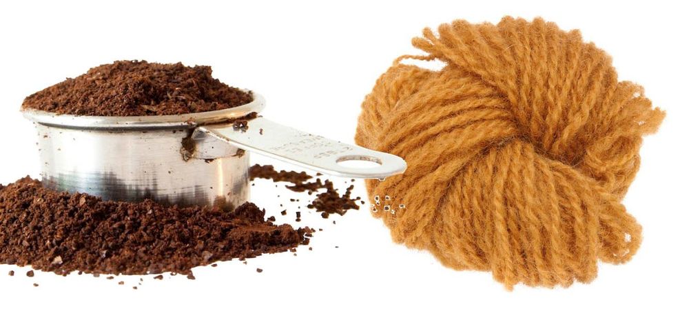 Spara kaffesump och koka ett riktigt starkt kaffe på det. Färgbadet ger garn en fin brungul färg.