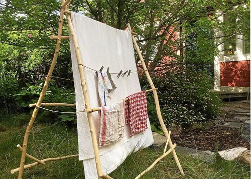 Röjda pinnar, skruv och en eftermiddag. Mer behövs inte för att göra en rustik torkställning