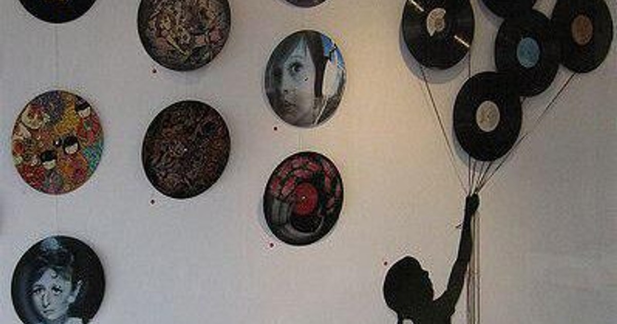 Högtflygande konst av LP-skivor. Först har fjärilsformer klippts ut ur skivorna sedan har de värmt och vikts till fint fladder.