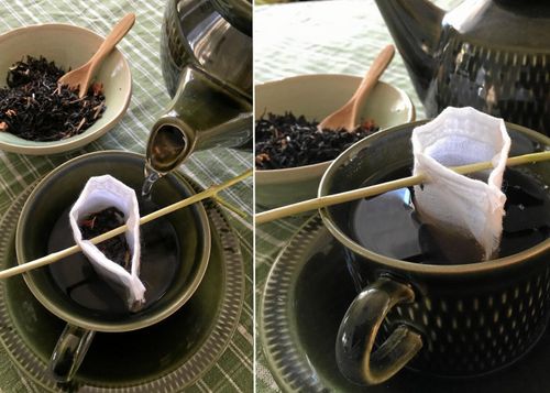 Sätt miljövänlig guldkant på testunden. Sy eviga tepåsar av tyg, häng på en kvist och slipp köpta tepåsar som aldrig multnar.