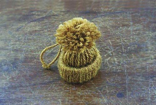 Minitoppluvor är superenkla att göra av garn. Det ser precis ut som om husets alla nissar hängt sina mössor i granen!
