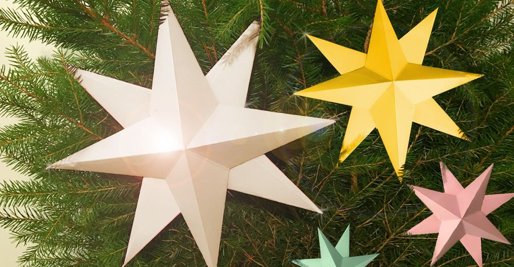 Papper, sax och lim är det som behövs till stjärnan som är snygg att hänga i granen eller placera i toppen.
