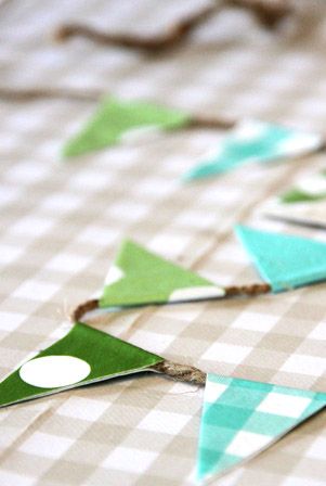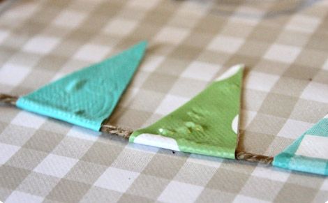 3. Använd jutesnöre för att limma fast dina vimplar på. Kanske inte det bästa alternativet för utomhusbruk, men det med bäst känsla enligt Anna.