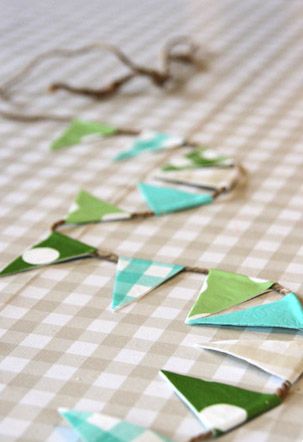 Gör Annas superfina vimplar av vaxduk som passar till utomhusfesten, altanen eller över jordgubbslandet.