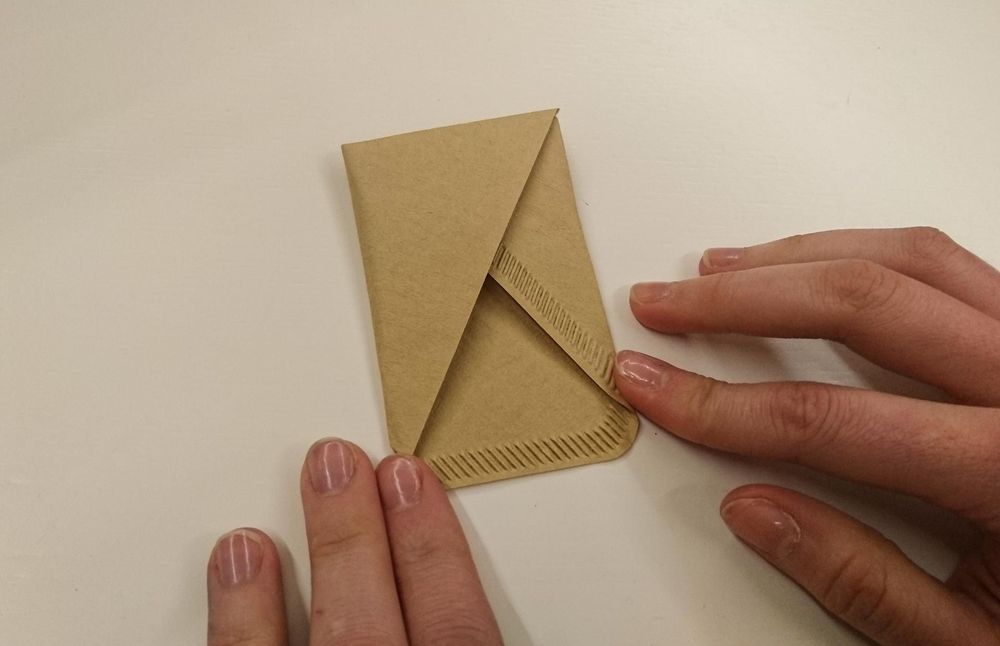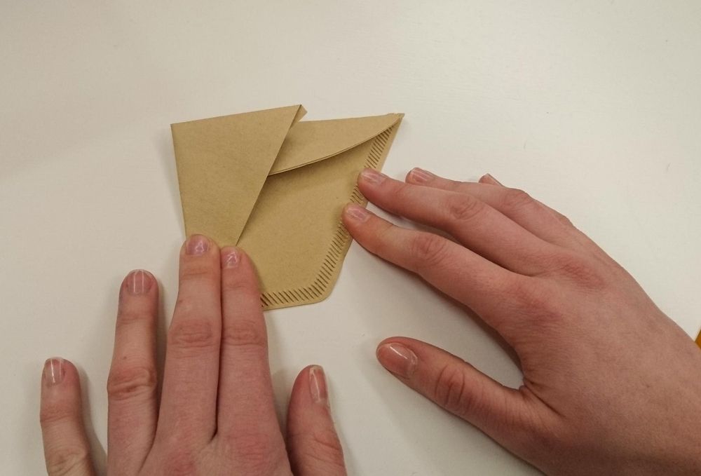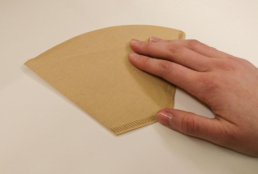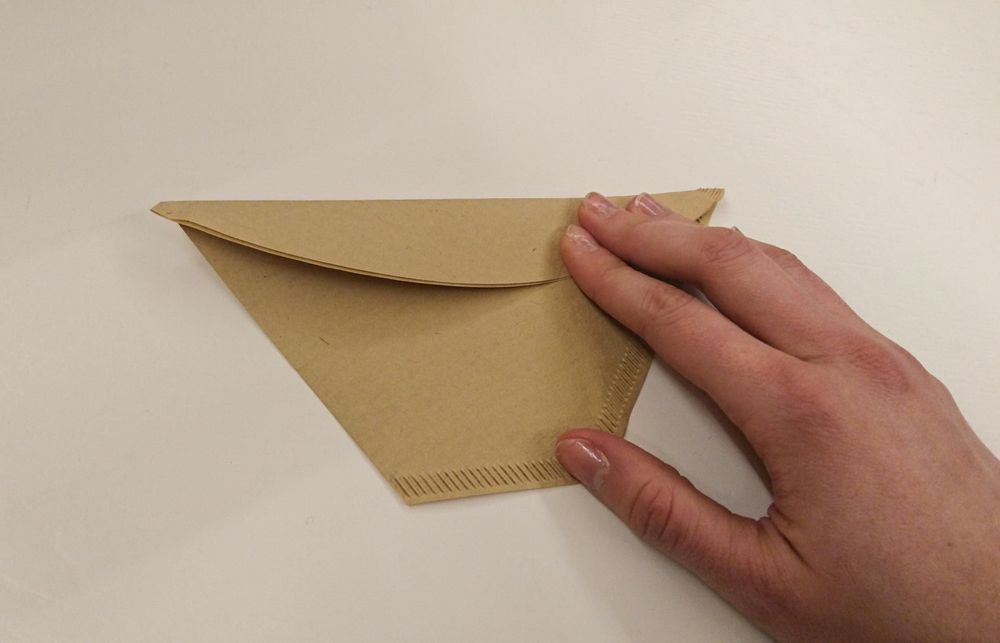 Steg 7. Så här ser det ut när du vecklar upp filtret och häller i dina frön. Vik sedan igen filtret enligt stegen ovan.