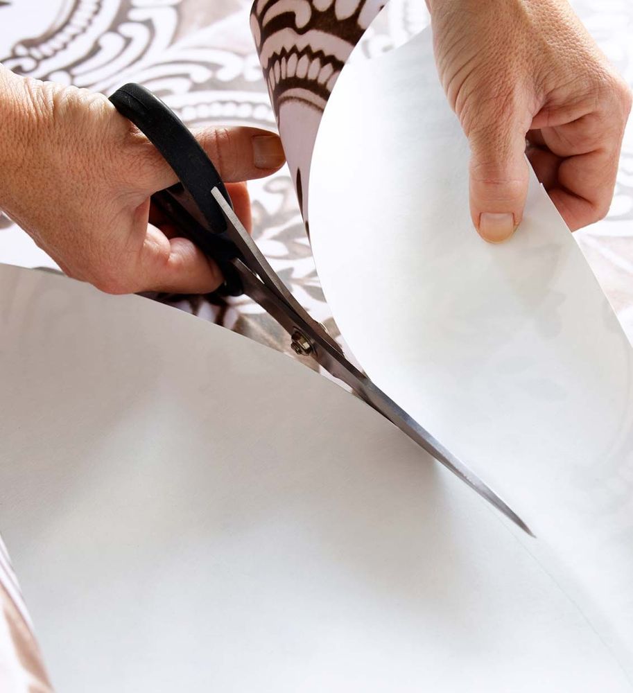 4. Limma fast tapeten på bordet med vanligt tapetlim.