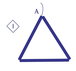 1. Trä en tråd genom 3 halmstrån och knyt ihop till en trekant med dubbelknut vid punkt A.